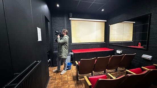 Op het moment dat we dit oproepje binnenkrijgen, ben ik natuurlijk meteen nieuwsgierig. Een seksbioscoop? Ik wist eigenlijk niet dat die nog steeds bestonden. Ik dacht dat iedereen zijn of haar porno wel op internet kon vinden tegenwoordig… Gelukkig mag ik ‘s nachts komen kijken bij de seksbioscoop in Helmond, waar dit stel elkaar dus heeft leren kennen. Onder één voorwaarde: dat ik op het einde van de nacht meehelp met schoonmaken…